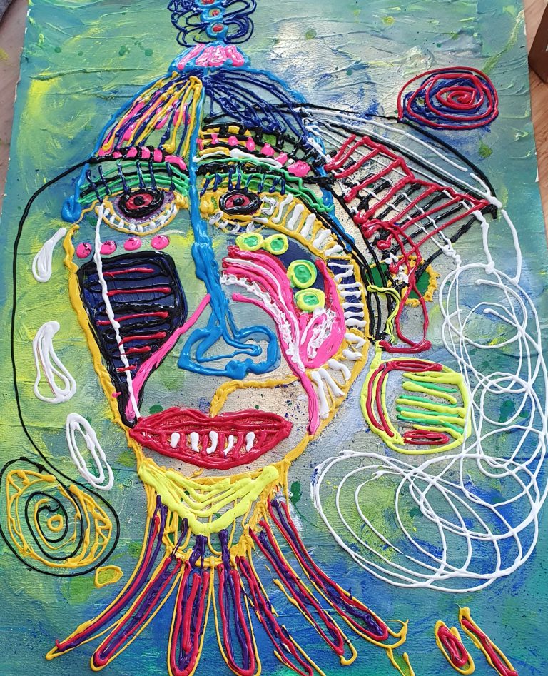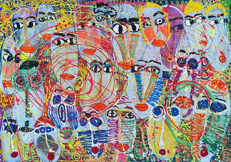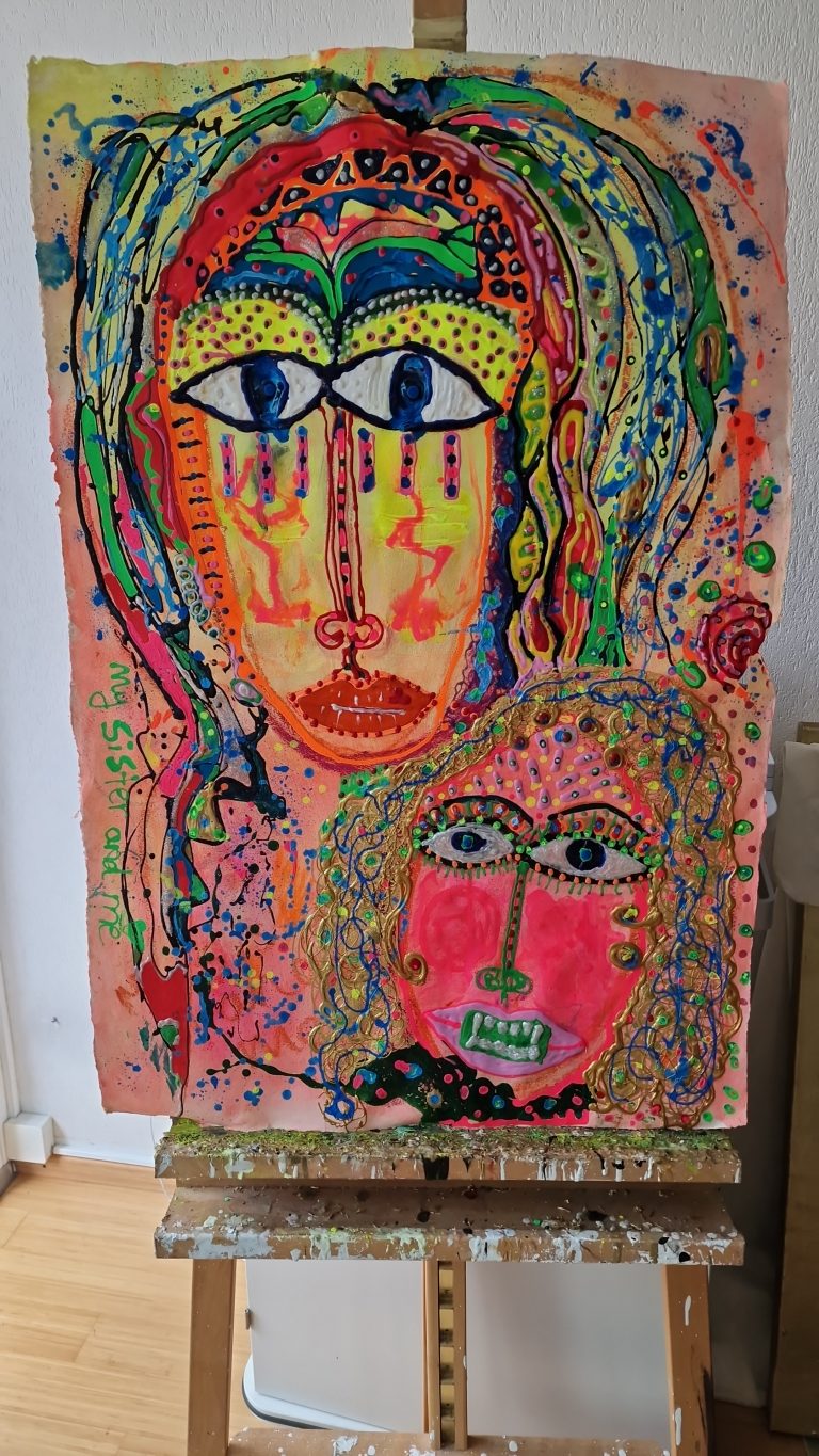There was this moment when I started painting faces to portray absurd episodes of my life. As soon as I am confronted with a situation that catches my attention and my cynical interpretation, I start painting, not being too sure about the outcome from the beginning on. My faces develop the further I dive into the topic.